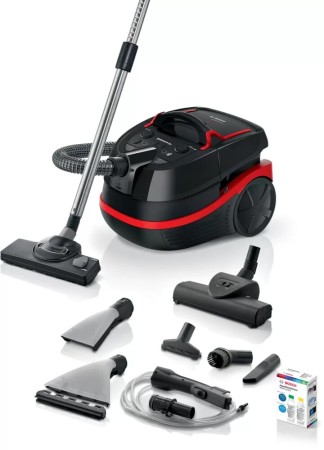 Noir/Rouge - 2100W - Brosse turbo - 2,5 bac à poussière - 5L réservoir d'eau pour aspirer des liquides - Aspirateur eau et poussière sans sac / bosch