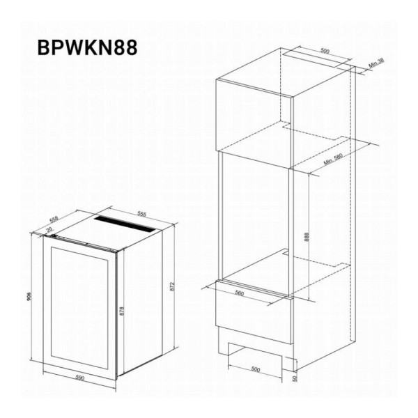 | Hauteur de la niche min | 888 mm |