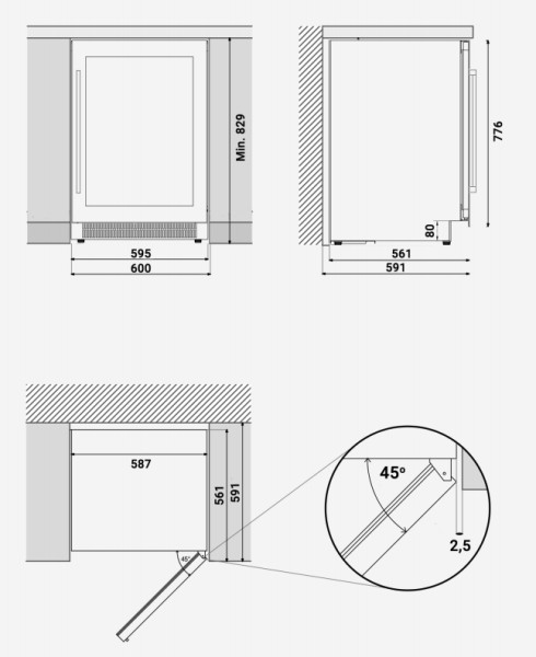 | Hauteur cave à vin | 80 - 100 cm hauteur |