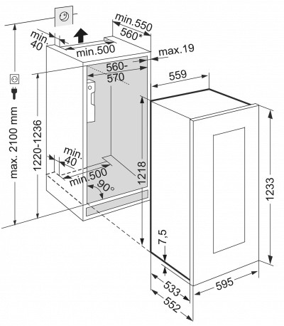 | Hauteur cave à vin | 120 - 140 cm hauteur |