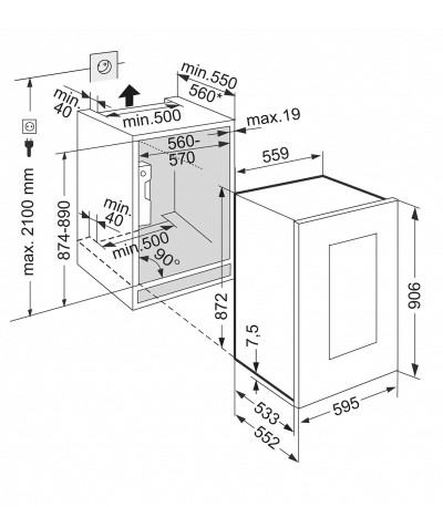 | Profondeur de la niche min. | 550 mm |