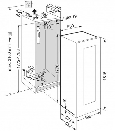 | Hauteur de la niche min | 1772 mm |