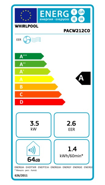 Blanc - 12000BTU - convient aux espaces jusqu'à 80m², selon l'isolation de votre espace - Chauffage et climatiseur mobile / Whirlpool PACW 212 HP