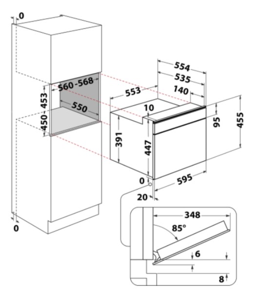 Largeur minimum de la niche d'encastrement (cm): 55.6
