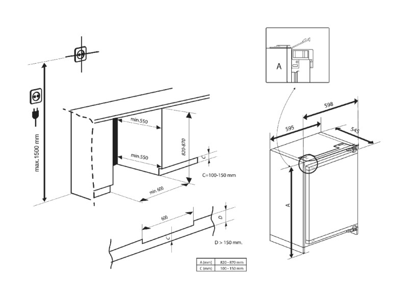 82cm - Porte sur porte - 91L - Congélateur encastrable sous le plan du travail / Whirlpool AFB 8281