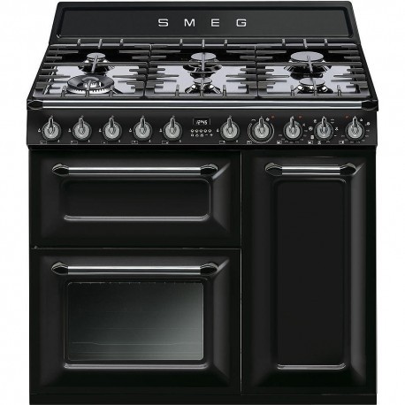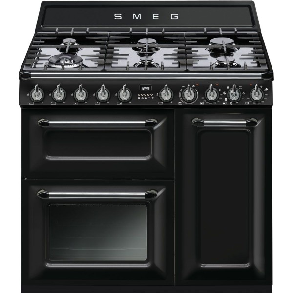 90cm - Gaz/Electric - Noir - 6 zones de cuisson - 2 fours - Nettoyage hydrolytique - Cuisinière au gaz / Smeg TR 93 BL