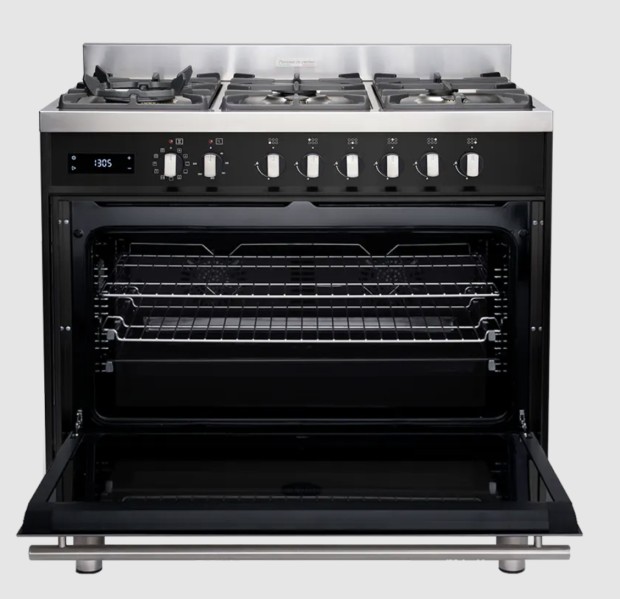 90cm - Gaz/Electric - Noir - 6 zones de cuisson - 1 four - Nettoyage catalytique - Cuisinière avec taque de cuisson au gaz / Boretti