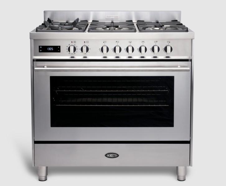 90cm - Gaz/Electric - Inox - 6 zones de cuisson - 1 four - Nettoyage catalytique - Cuisinière avec taque de cuisson au gaz / Boretti