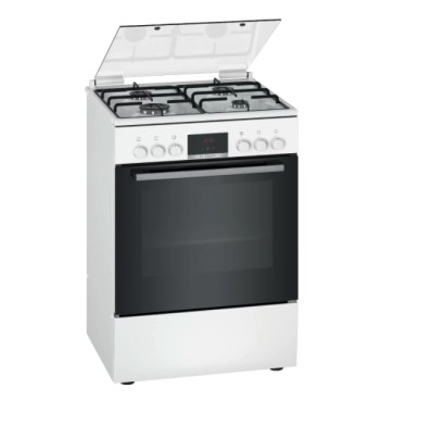 60cm - A - Gaz/Electrique - Blanc - Thermocouple - Four Multifonction3D Plus - Cuisinière avec plaque de cuisson au gaz / Bosch
