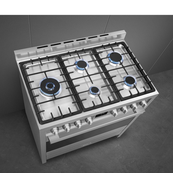 90cm - Gaz/Electric - Inox - 5 zones de cuisson - 1 four - Nettoyage catalytique - Cuisinière au gaz / Smeg