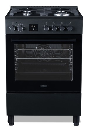 60cm - Gaz/Electrique - Noir - 4 zones de cuisson - 1 four - Cuisinière au gaz / Everglades