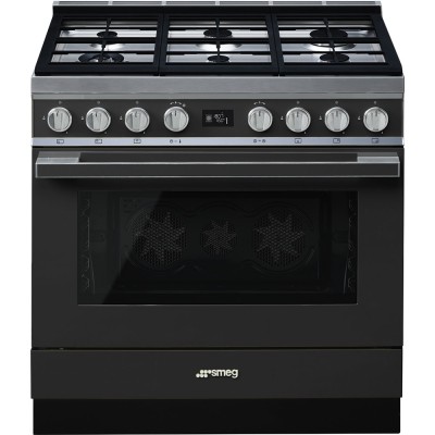 90cm - Gaz/Electric - Anthracite - 6 zones de cuisson - 1 four - Nettoyage hydrolytique - Cuisinière au gaz / Smeg