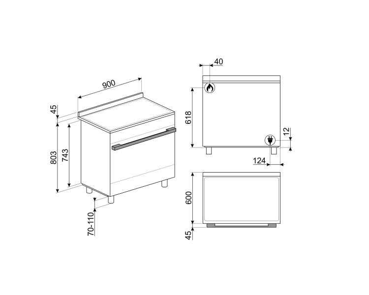 Smeg CPF 9 GMAN Cuisinière avec taque de cuisson au gaz
