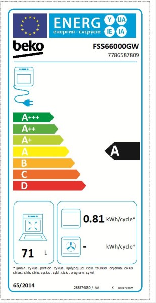 60cm - Electric/Electric - Blanc - 4 zones de cuisson - 1 four - Cuisinière electrique / Beko FSS 66000 GW