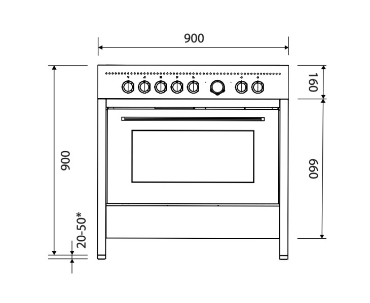 90 cm largeur | 5 zones de cuisson | nettoyage manuelle