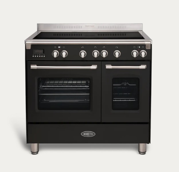 90cm - Noir - 4 zones de cuisson - 2 fours - Cuisinière induction / Boretti