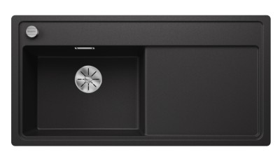 Cuve exceptionnellement grande avec vaste plateau d’égouttageLa plage de robinetterie prolongée sur toute la largeur crée de l’espace utile