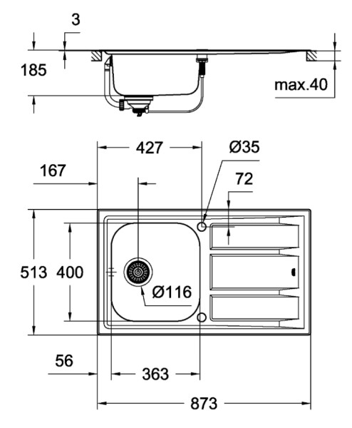 à encastrer / à sous-encastrer | inox | réversible avec égouttoir