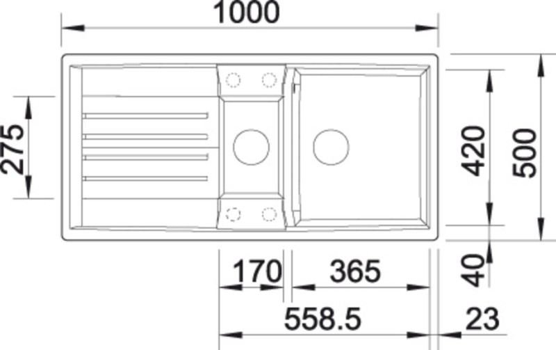 Cuve principale généreusement dimensionnée et cuve complémentaire avec cuvette en inox