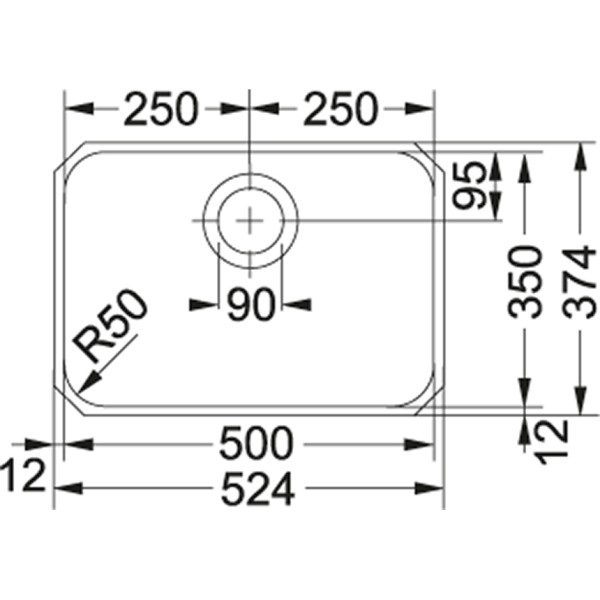Franke BOX - Cuve à affleurer, SlimTop et à sous-encastrer / 490 x 450 mm / Lisse BXX 210