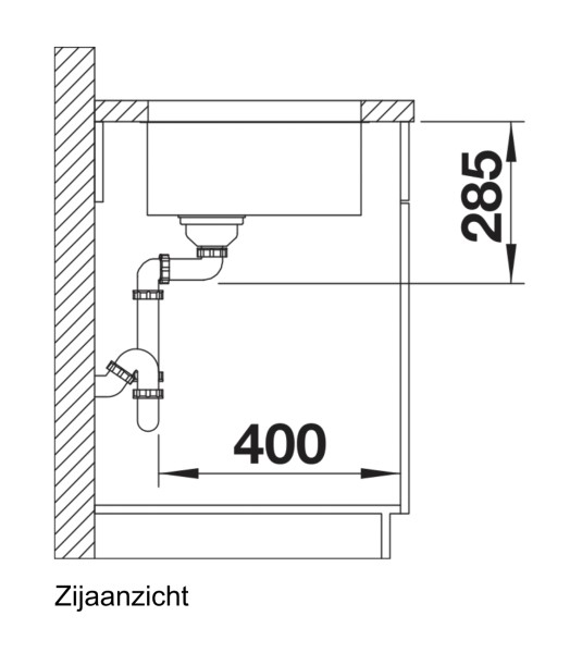 Plaatsbesparend afloopgarnituur met overloop, korfventiel 3 ½", bevestigingsset (dichting niet inbegrepen)BLANCO SUPRA-UCommande manuelle