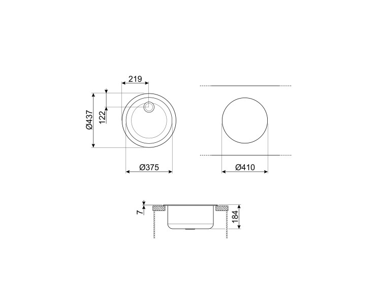 Hauteur depuis le plan de travail: 6 mm Dimensions de la découpe du top (mm): 410 mm Diamètre trou mitigeur: 35 mm