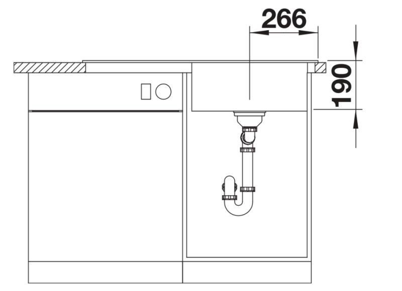 Cuve exceptionnellement grande avec vaste plateau d’égouttageLa plage de robinetterie prolongée sur toute la largeur crée de l’espace utile