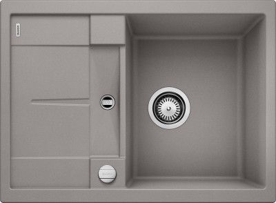 Plaatsbesparend afloopgarnituur, korfventiel 3 1⁄2" met draaiknopbediening voor de automatische versieBLANCO METRA 45 SÉvier composite de granit de SILGRANIT® PuraDur®