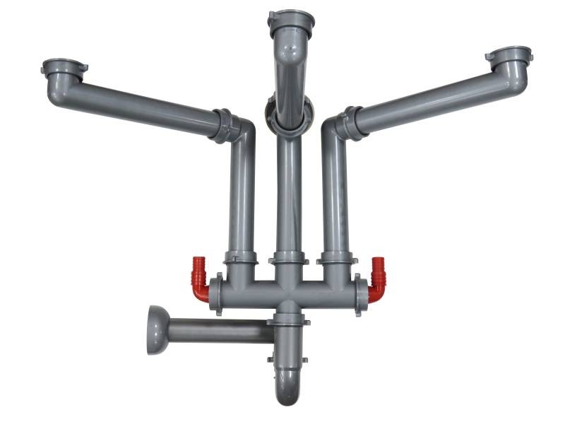 Set d'évacuation gain de place (raccord de décharge avec siphon) pour 3 bassinsAjustable en hauteu