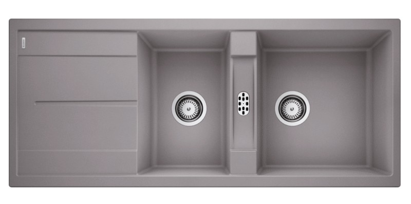 Plaatsbesparend afloopgarnituur, korfventielen 3 ½"BLANCO METRA 8 SÉvier composite de granit de SILGRANIT® PuraDur®