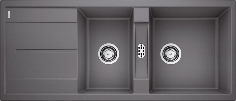 Plaatsbesparend afloopgarnituur, korfventielen 3 ½"BLANCO METRA 8 SÉvier composite de granit de SILGRANIT® PuraDur®