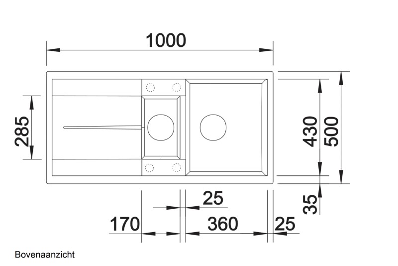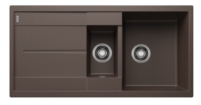 Plaatsbesparend afloopgarnituur,korfventielen 3 ½"BLANCO METRA 6 SÉvier composite de granit de SILGRANIT® PuraDur®