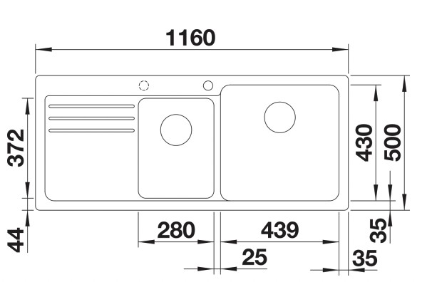 Cuve de dimensions généreuses pour de multiples tâches dans et autour de l’évierCoins intérieurs doux dans la cuve pour un nettoyage facile