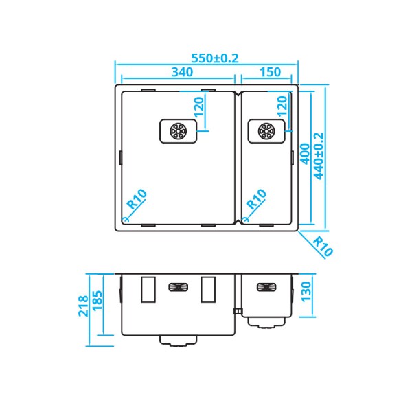 Caressi CAPP 3415Q 10 Evier de cuisine