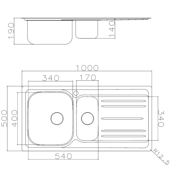 à affleurer / à sous-encastre | inox | égouttoir à gauche