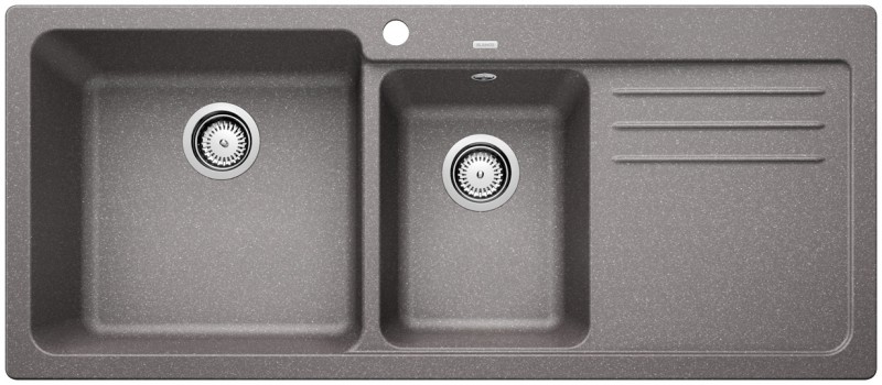 Plaatsbesparend afloopgarnituur, 2 korfventielen 3 1⁄2"BLANCO NAYA 8 SÉvier composite de granit de SILGRANIT® PuraDur®