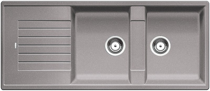 Plaatsbesparend afloopgarnituur, twee korfventielen 3 ½"BLANCO ZIA 8 S SILGRANIT®PuraDur®