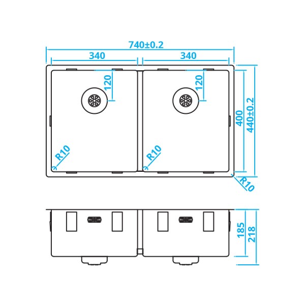 Caressi CAPP 3434R 10 Evier double