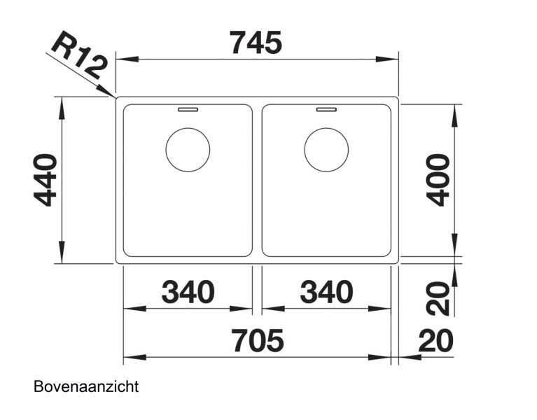 Franke BOX - Cuve à affleurer, SlimTop et à sous-encastrer / 740 x 450 mm / Lisse BXX 220