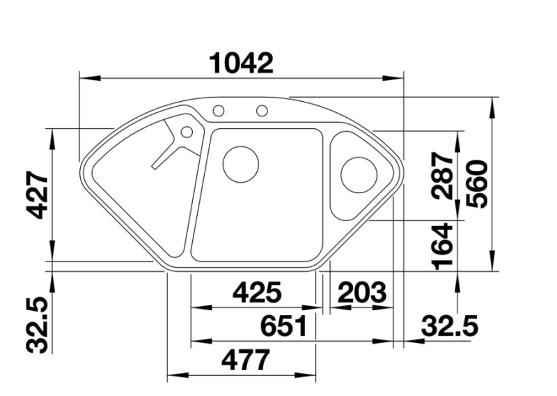 Agencement ergonomique de la cuve, de la cuve supplémentaire et de l’évacuationCuve spacieuse à longue diagonale, pratique notamment pour le nettoyage de plaques de cuisson