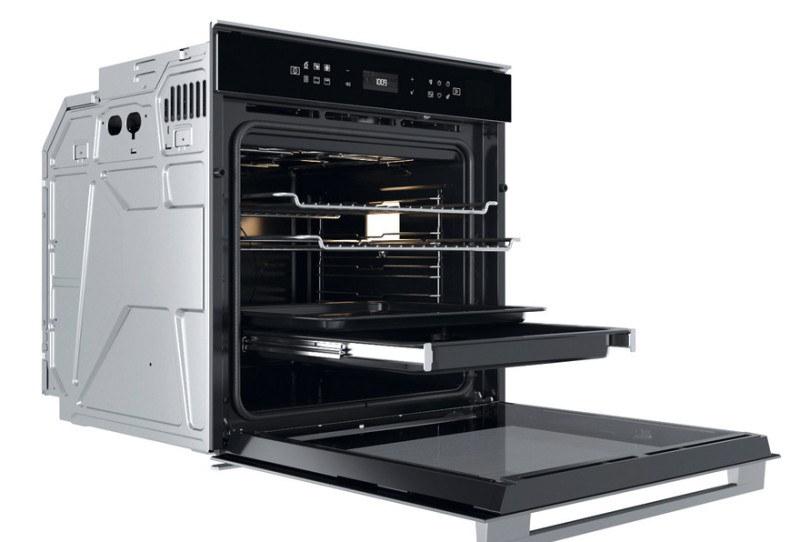Standard 60cm - Air Chaud - Nettoyage pyrolytique - 73L - Noir - Fonction à vapeur SteamSense - Porte SoftClose - Four combi à vapeur / Whirlpool