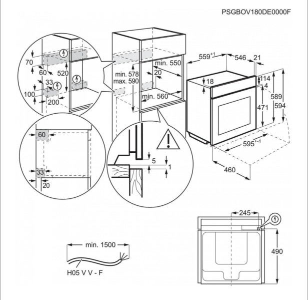Dimensions d'encastrement (HxLxP) en mm: 590x560x550