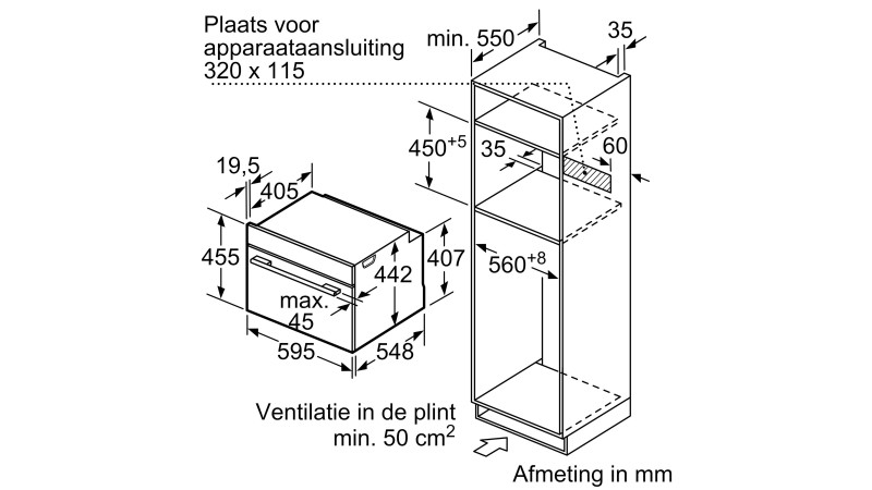 Dimensions d'encastrement (HxLxP): 450-455 x 560-568 x 550 mm