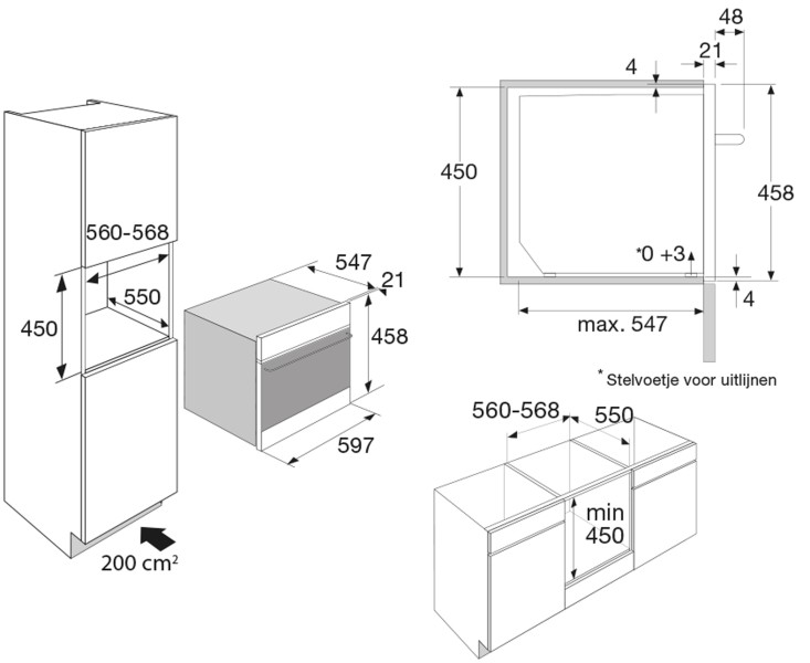 | Profondeur de la niche min. | 550 mm |