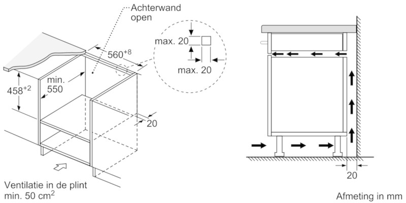 - Dimensions de l'installation (hxlxp) : 450-452x560-568x550 mm