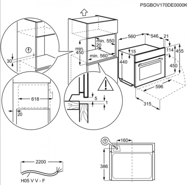 Dimensions d'encastrement (HxLxP) en mm: 450x560x550Dimensions (HxLxP) en mm: 455x595x567Fusible (A): 16Valeur de raccordement (W): 3000Type de four: Combi micro-ondesEnergie Four: ElectriqueNombre de cavités: 1Volume du four (L): 43