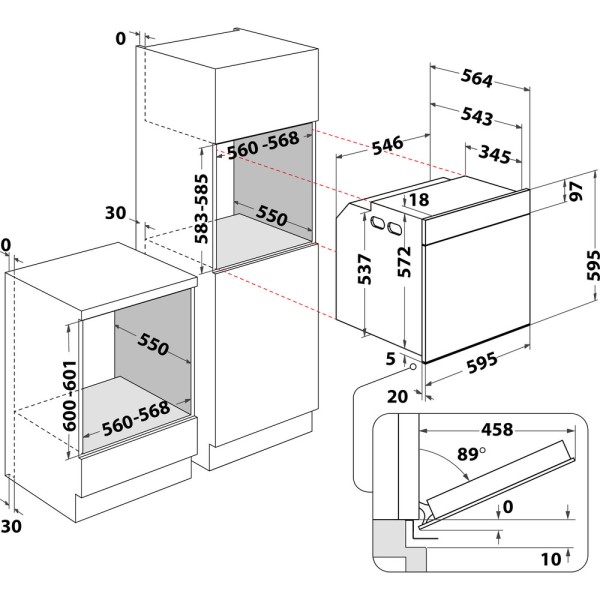 Dimensions de la niche (HxLxP) : 583 x 560 x 550 mm
