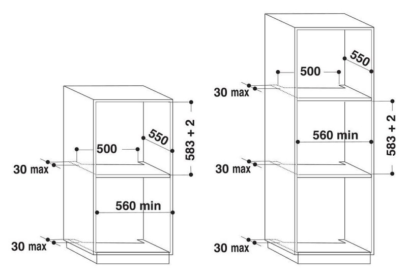 | Hauteur de la niche min | 583 mm |