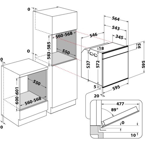 - Dimensions de la niche (HxLxP) : 583 x 560 x 550 mm
