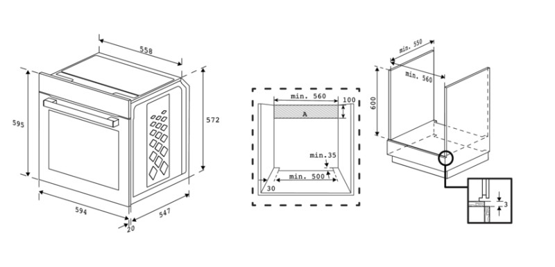 | Hauteur de la niche min | 590 mm |